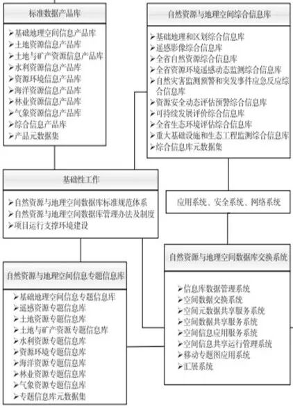 自然资源与空间地理数据库内容包括自然资源和地理空间综合信息库及综合信息产品库、基础性自然资源专题信息库及产品库、基础性地理空间专题信息库及产品库,以及各数据库的元数据库和数据目录体系。