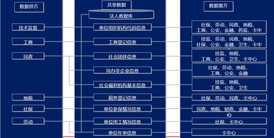 法人数据库以法人单位组织机构代码为统一标识,以编办、民政、工商、质检等部门对法人管理的注册登记、变更、注销等法人信息为依据的法人单位基础信息库,实现法人库与各部门的信息交换,实现法人单位基础信息采集的标准化和信息动态维护、反馈机制的制度化,为国家电子政务、社会和市场监管、法人信息公开打下信息化基础。