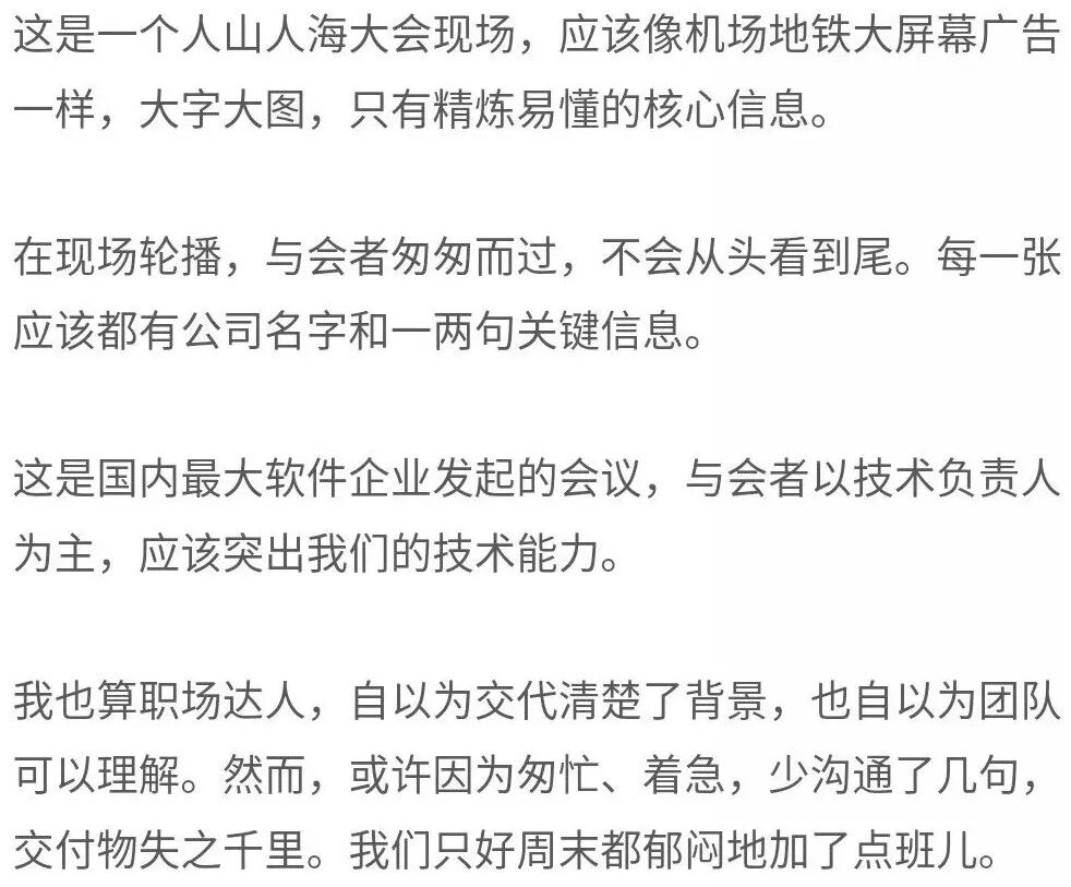 然而,少说一句,又可能会出现加班重做,大家一起捶胸顿足的情形。