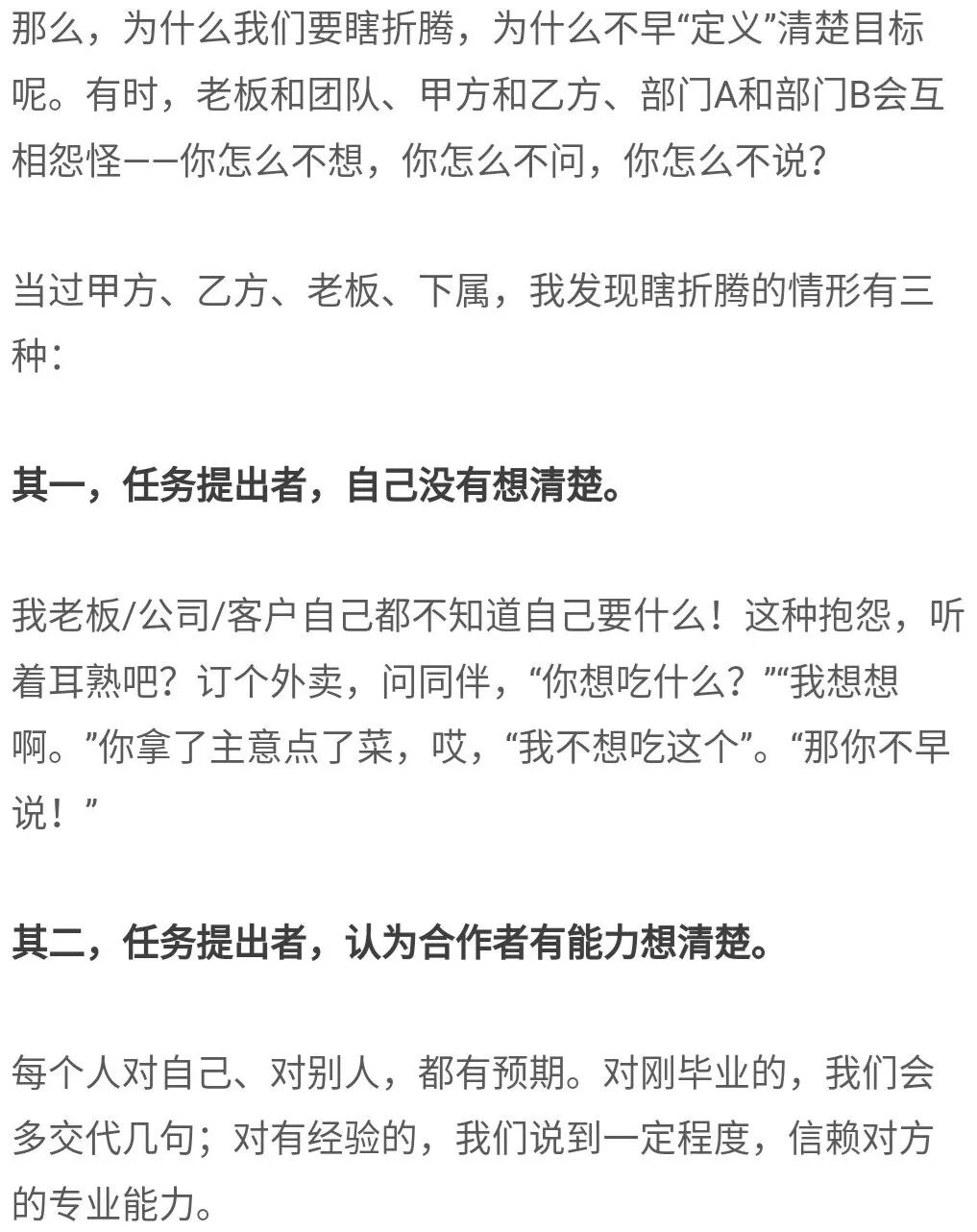 只要我们在任务中,无论是什么角色,宁可前置思考、前置沟通:让自己想清楚,帮对方想清楚,大家都不清楚的就一起想清楚。