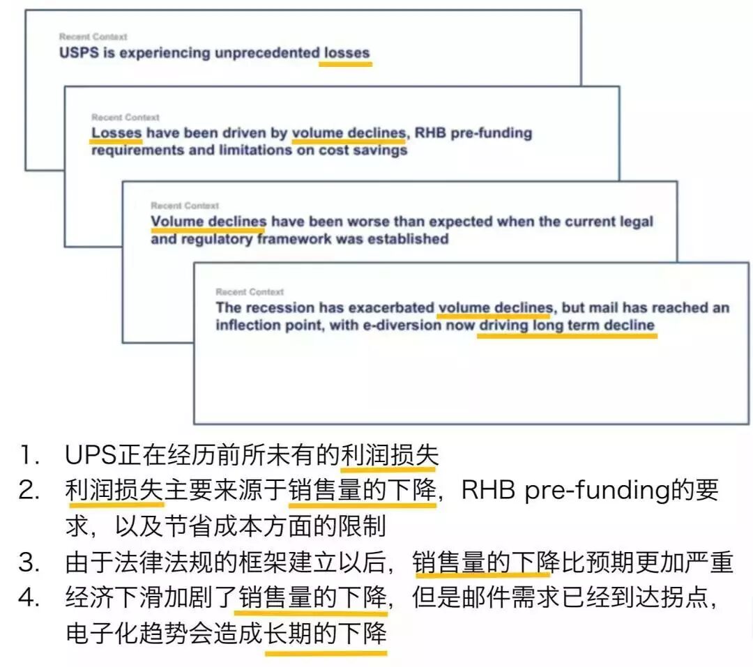典型的背景有“我们采取了某些举措”、“业绩表现很好”、“我们遇到一个问题”等等。有的听众会问“你说的我已经知道了,然后呢?”这时候你就会开始讲解“困境”。