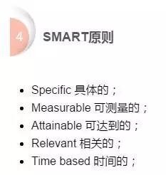 意义:人们在制定工作目标或者任务目标时,考虑一下目标与计划是不是SMART化的。只有具备SMART化的计划才是具有良好可实施性的,也才能指导保证计划得以实现。