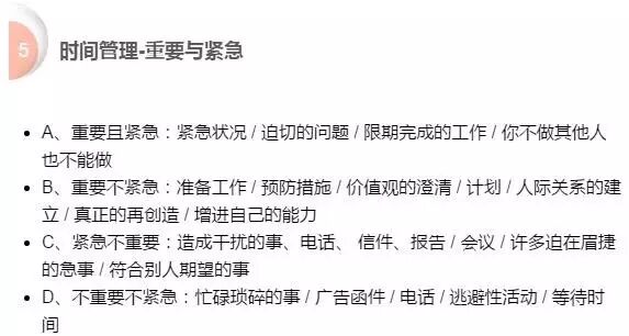 优先顺序=重要性*紧迫性 在进行时间安排时,应权衡各种事情的优先顺序,要学会“弹钢琴”。 对工作要有前瞻能力,防患于未然,如果总是在忙于救火,那将使我们的工作永远处理被动之中。