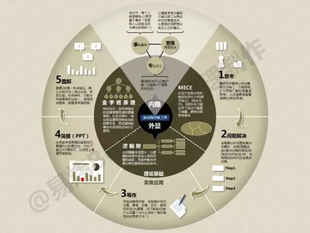 下面的罗盘(图要放大看)是台湾人整理的,将麦肯锡的思考工具系统地镶嵌在一个盘上,可以作为大家思考的一个指引。