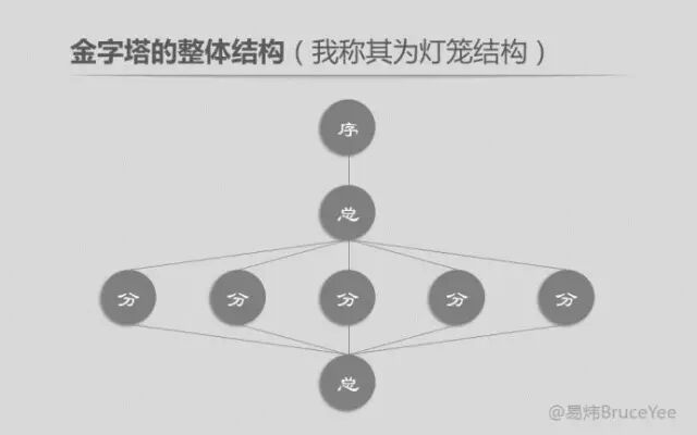金字塔原理是众多结构化工具的一种,或者说是名气比较大的一种,人家出生名门,身披麦肯锡战袍,自带光环啊!不过敲掉光环,你就发现,这货其实就是初中语文学的总分总啊!